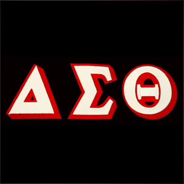 Delta Sigma Theta (DST) 3 1/2"T White/Red 3-D Letters Emblem Set W/Heat Seal Backing