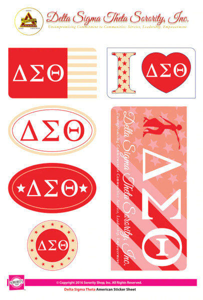 Get your "Greek On" with these high quality, American themed stickers! Each sheet contains 7 stickers ranging in size from a 2" circle to a generous 6.5"x 3" rectangle. Printed on sturdy vinyl, they are easily removed or repositioned leaving NO STICKY RESIDUE!