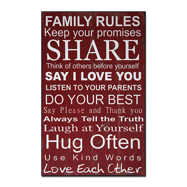 - Inscription: Family Rules Keep your promises SHARE Think of others before yourself SAY I LOVE YOU LISTEN TO YOUR PARENTS DO YOUR BEST Say Please and Thank you Always Tell the Truth Laugh at Yourself Hug Often Use King Words Love Each Other