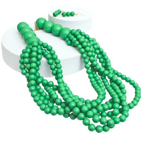 Green Bubble Gum Bead Necklace Set