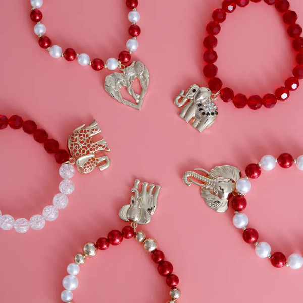5-Piece Mixed Red Clear Faceted Glass and Gold Metal Beads Bracelet Set Features: Includes a variety of gold metal elephant charms, with an impressive elephant head charm measuring 1.35 inches long and 1.25 inches wide. Benefits: Versatile set for every mood, customizable combinations, and unique elephant accents that make a statement. Wear Styles: Mix, match, and stack for a personalized look that expresses your individuality. Dare to be different? Stack these bracelets and wear your confidence!