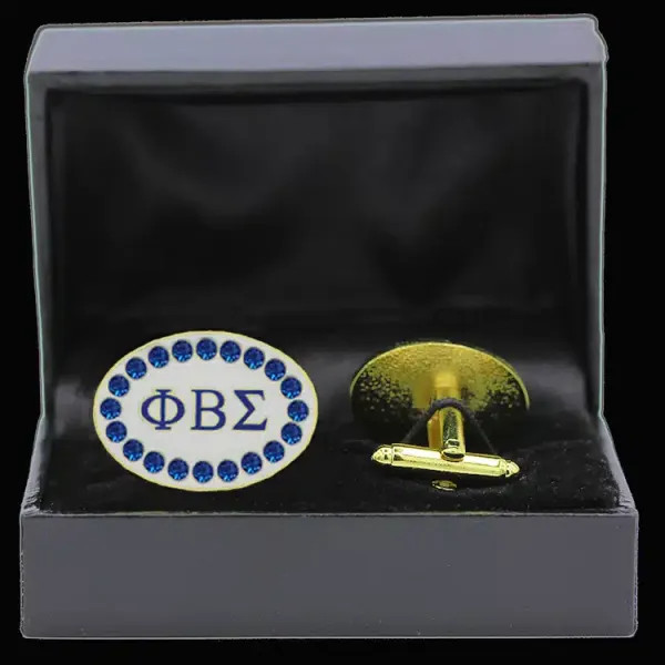 Phi Beta Sigma (PBS) 7/8″W Sapphire Austrian Crystal Silver Cufflinks In Leatherette Box