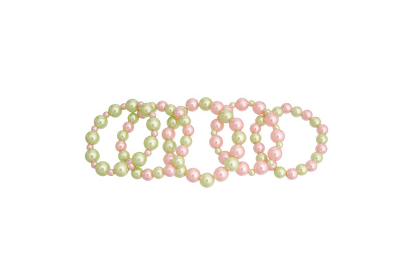Pink and Green Varying Sized Pearl 5 Pcs Stretch Bracelet Set