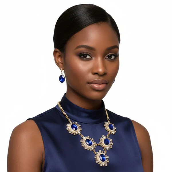 Step into the world of dazzling beauty with the Royal Blue Rhinestone Necklace Set. This exquisite piece of jewelry exudes a sense of elegance and sophistication, making it perfect for any special occasion or event. Crafted with attention to detail, this necklace set is designed to make you the center of attention wherever you go.
