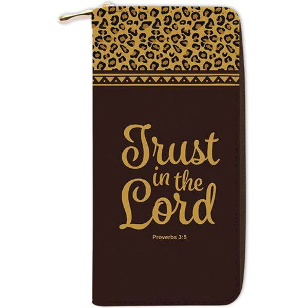 A gorgeous and practical women's wallet adorned with a beautiful leopard print design, accompanied by the words, "Trust in the Lord. Proverbs 3:6."