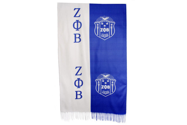 Ready to represent Zeta Phi Beta in style? Grab this half-blue and half-white fashion shawl scarf featuring the ZPB Sorority shield and Greek letters print detail, and get ready to turn heads. Because when you're wearing a scarf this fabulous, everyone knows you're a proud Zeta sister!