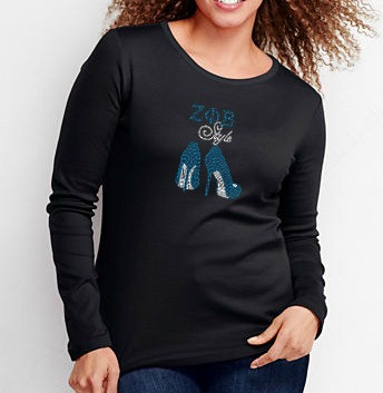 ZPB Rhinestone Heel Long Sleeve Tee (Scoop Neck)