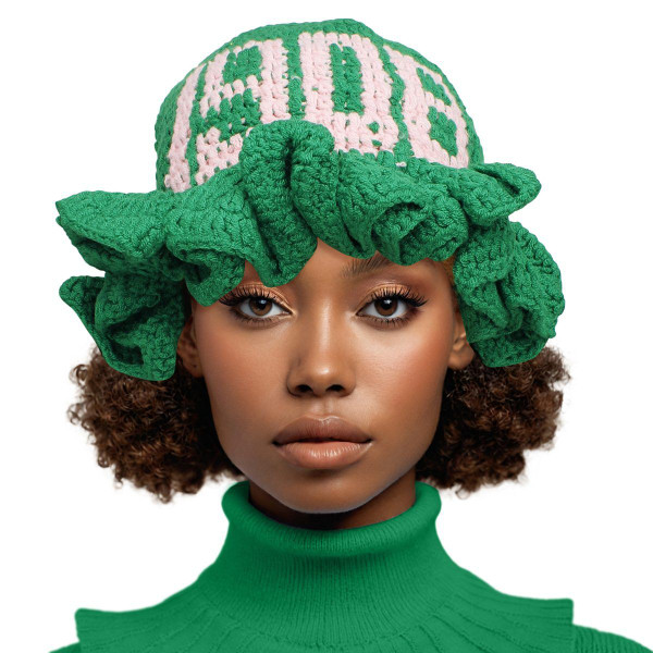 Add playful sophistication and sorority pride to any outfit with this Wholesale AKA Sorority Green Crochet Ruffle 1908 Bucket Hat. Crafted from super thick and soft green acrylic yarn, this crochet bucket hat features a charming ruffled edge and signature green 1908 detail, perfect for Alpha Kappa Alpha fans. Cozy, stylish, and vibrant, it measures 10" x 14" laid flat, with a 5.5" crown plus 2" ruffle when worn-ideal for retailers offering trendy, statement-making sorority accessories.
