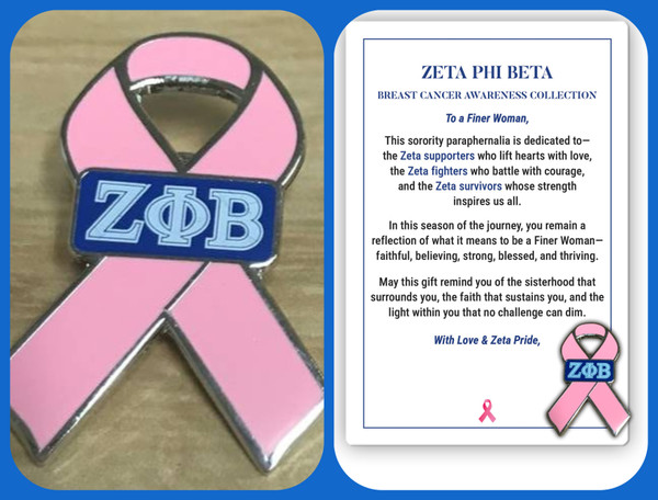 Zeta Phi Beta Breast Cancer Awareness Pin is 1 1/2 inch in height with clutch back.