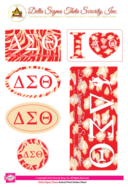 Get your "Greek On" with these high quality, Animal print stickers! Each sheet contains 7 stickers ranging in size from a 2" circle to a generous 6.5"x 3" rectangle. Printed on sturdy vinyl, they are easily removed or repositioned leaving NO STICKY RESIDUE!