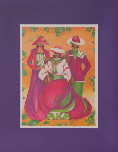 Elegance, style, class and togetherness are the attributes depicted in the Alpha Kappa Alpha Sorority, "First in Unity" work of art. The artist achieved a vision of the sorority 's emphasis on unity at the time. It also reflects the strong sisterly bond which is representative of the sorority.