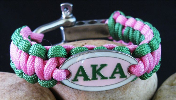 AKA PINK ^ GREEN NYLON SURVIVAL BRACELET w/ STAINLESS STEEL CLASP.