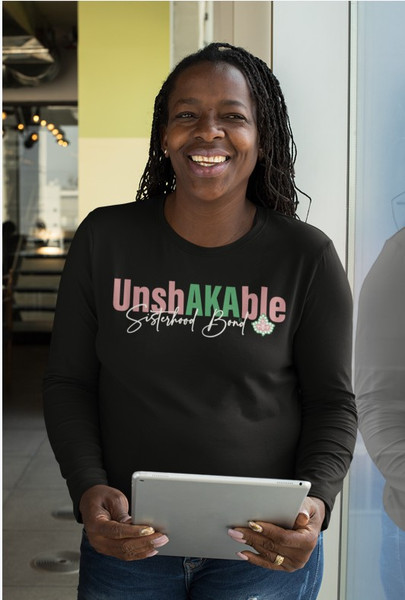 The AKA UnshAKAble Long Sleeve T-Shirt is designed for Sorors who represent with purpose—season after season. With extended coverage and a sleek, classic silhouette, this long sleeve tee delivers comfort, versatility, and unmistakable Alpha Kappa Alpha pride.