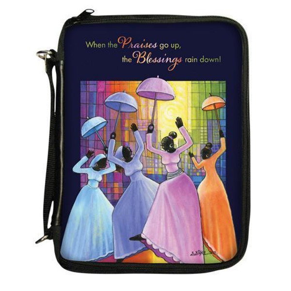 A gorgeous and practical way to protect God's Word. This Bible Bag is adorned with the inspirational black art of international artist, DD Ike. A master of mixed media, Ike expertly captures a vibrant scene of four beautifully dressed African American women praising God with song, music and dance. Each Bible Cover also acts as a great way to organize your miscellaneous items so that you're always prepared for fellowship or Sunday Sermon.